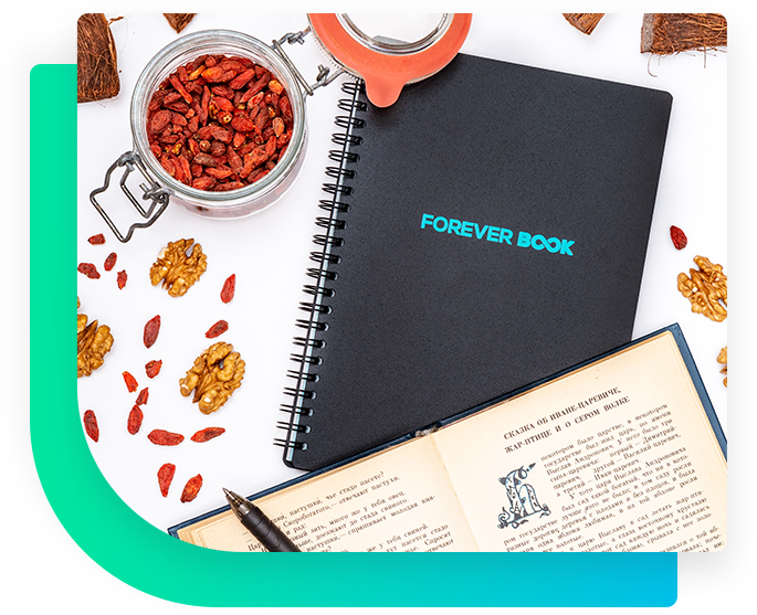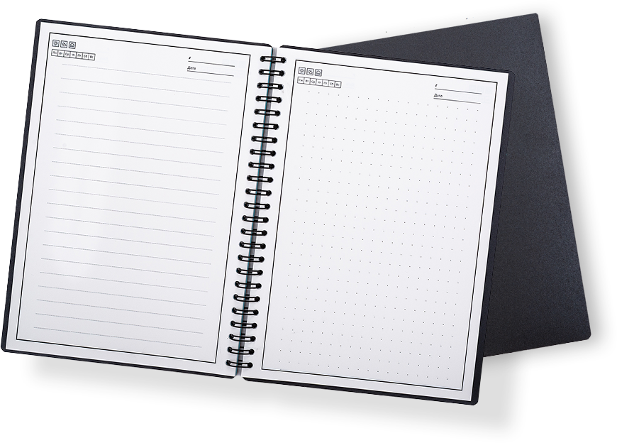 Благодаря особому составу бумаги и специальным чернилам вы можете писать в этом блокноте вечно, все надписи стираются влажной тряпочкой (входит в комплект)